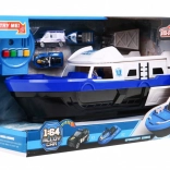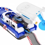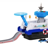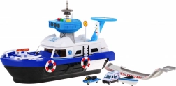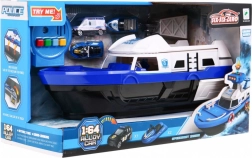 Zestaw zawiera policyjny van, skuter wodny i motorówkę, które razem tworzą kompletną jednostkę ratunkową do kreatywnej zabawy w role.