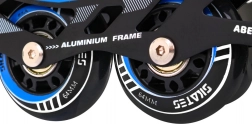 Bezpieczne dopasowanie zapewnia potrójne zapięcie: sznurowanie, pasek na rzep i klamra z zabezpieczeniem przed przypadkowym otwarciem. Aluminiowa płoza w łyżworolkach/wrotkach zwiększa sztywność i trwałość, kółka PU 64×24 mm o twardości 85A w połączeniu z łożyskami ABEC-7 dbają o płynną jazdę. Zimą docenisz nierdzewne płozy łyżew oraz praktyczne osłony ostrzy.