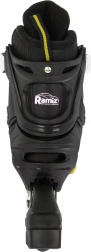 But wyposażono w skuteczną wentylację, półprzepuszczalną membranę oraz profilowaną wkładkę z miękką pianką EVA pokrytą welurowym materiałem Velvet. Potrójne zapięcie (sznurowanie, pasek na rzep, klamra z zabezpieczeniem) stabilnie trzyma stopę. Aluminiowa płoza z kółkami PU 70×24 mm, twardość 85A i łożyska ABEC-7 zapewniają płynną i szybką jazdę, prawa rolka ma hamulec.