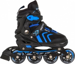 Jednym przyciskiem dopasujesz rozmiar w zakresie 39–43 (ok. 24–27,5 cm), dzięki czemu łyżwy/rolki posłużą przez kilka sezonów.