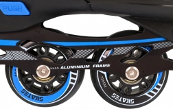 Aluminiowe podwozie, łożyska ABEC-7 i poliuretanowe kółka 72×24 mm o twardości 85A gwarantują gładki i szybki ślizg oraz pewną kontrolę. Potrójne zapięcie – sznurowadła, rzep i klamra z blokadą – stabilnie trzyma stopę. Prawa rolka jest wyposażona w hamulec dla bezpiecznego zatrzymania.