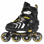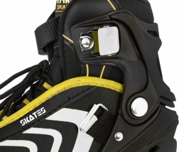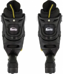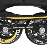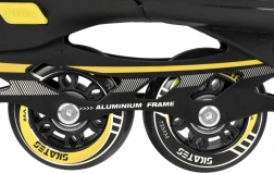 Płynną jazdę gwarantują kółka PU 72x24 mm o twardości 85A, precyzyjne łożyska ABEC-7 i solidna aluminiowa rama. Do zimowego użytku wystarczy wymienić podwozia na nierdzewne płozy. Wnętrze buta jest komfortowe dzięki piance EVA, profilowanej wkładce, półprzepuszczalnej membranie i wentylacji.