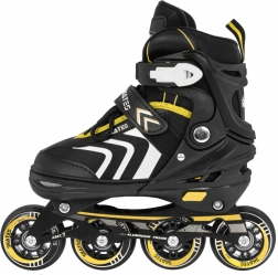 Uniwersalny dziecięcy zestaw 4w1 do całorocznej zabawy: łyżworolki, wrotki oraz łyżwy w jednym. Dzięki pięciostopniowemu systemowi regulacji rozmiaru 39–43 rośnie razem z dzieckiem. Aluminiowa płoza/ramka, łożyska ABEC-7, kółka PU 72 mm / 85A oraz nierdzewne płozy zapewniają płynną jazdę i bezpieczeństwo. Wygodę zwiększają półtwarda konstrukcja, wentylacja i miękka wkładka z EVA z materiałem Velvet.