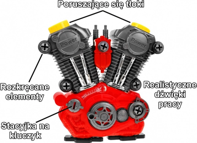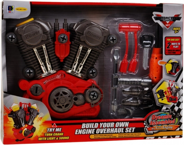 W skład zestawu wchodzą różne plastikowe narzędzia, które pozwalają dzieciom na prawdziwe próby napraw i modyfikacji silnika.