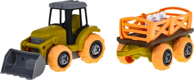 Zabawka zawiera odłączaną przyczepę i ruchomą łychę do realistycznych scen farmy.