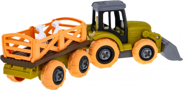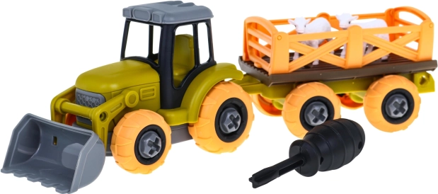 Ten solidnie wykonany traktor z odłączaną przyczepą jest idealny dla dzieci od trzeciego roku życia. Jest dostarczany w stanie gotowym do użycia, a jego główną zaletą jest to, że można go rozłożyć i ponownie złożyć za pomocą dołączonego śrubokręta. Nie wymaga baterii, dzięki czemu jest bezpieczny i łatwy w użyciu. Szczegóły zabawki obejmują: