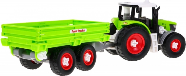Po złożeniu traktor z przyczepą ma wymiary około 46 cm x 11 cm x 12 cm, a wiertarka mierzy około 11,5 cm x 3 cm. Cały zestaw jest zapakowany w pudełko o wymiarach około 53 cm x 18 cm x 17 cm.