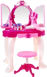 Ta interaktywna różowa toaletka zamieni każdą zabawę w magiczny rytuał piękna. Magiczna różdżka na podczerwień potrafi otworzyć boczne lusterka, a na głównym lustrze pojawia się księżniczka, podczas gdy światła i melodie tworzą bajkową atmosferę. Dzięki wejściu MP3 dzieci mogą odtwarzać ulubione piosenki i bawić się jeszcze lepiej.
