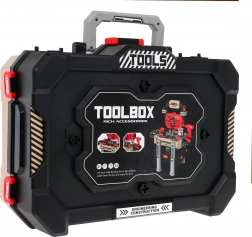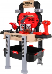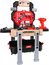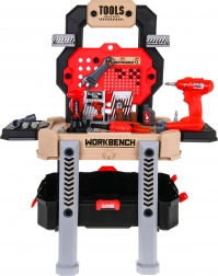 Ten realistyczny dziecięcy warsztat łączy przejrzysty stojak z pojemną walizką, aby narzędzia były zawsze pod ręką i łatwe do schowania. Dzięki 78 elementom oraz działającej wiertarce/śrubokrętowi dzieci poćwiczą wkręcanie, cięcie i montaż, poznając podstawy pracy w warsztacie.
