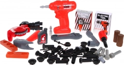 Bogaty zestaw narzędzi, śrubek, drewnianych elementów i akcesoriów wspiera wyobraźnię, koncentrację i małą motorykę dzieci.