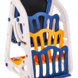 Po drugiej stronie tablicy znajdują się półki na książki, które zapewniają miejsce do przechowywania literatury dziecięcej. Produkt jest bezpieczny z zaokrąglonymi krawędziami, co zapewnia ochronę podczas zabawy. Łatwy montaż i demontaż zgodnie z dołączoną instrukcją.