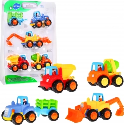 Ten wybór pojazdów zadowoli każdego małego miłośnika maszyn budowlanych. Dzięki swoim niewielkim rozmiarom pojazdy dobrze leżą w małych dziecięcych rączkach. Są bardzo praktyczne, mieszczą się wszędzie i można je zabrać na spacer lub do przedszkola. Zestaw 4 starannie wykonanych pojazdów ucieszy każdego małego inżyniera.