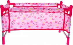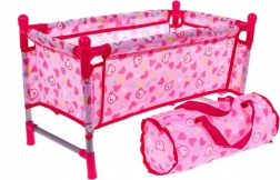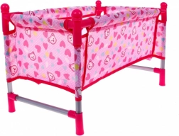 Łóżeczko zaprojektowane dla lalek jest idealne do zabawy w opiekę nad niemowlęciem. Wykonane z różowej tkaniny z motywami serduszek i misi, które przyciągną uwagę każdego dziecka.