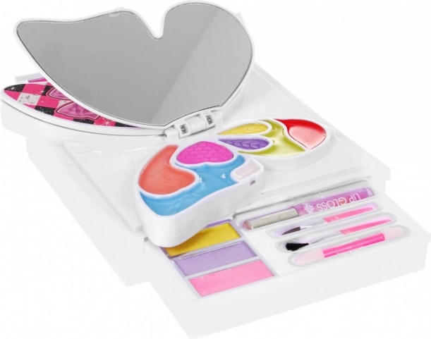 Kolorowe cienie do powiek, błyszczyki do ust i dwie pomadki dają pole do popisu wyobraźni. Zestaw jest przeznaczony dla dzieci i wykonany z atestowanych, wysokiej jakości surowców.