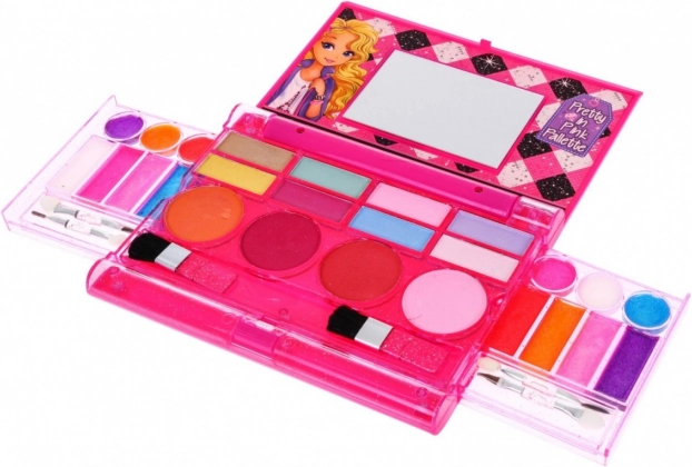 Urocza różowa paletka do makijażu dla dzieci od 5 lat oferuje kolorowe cienie i pomadki, praktyczne pędzelki oraz lusterko w rozkładanej paletce. Wszystko mieści się w kompaktowym etui, idealnym w podróży. Wykonane z bezpiecznych materiałów i zaprojektowane tak, aby wspierać kreatywność oraz motorykę małą.