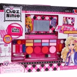 - Wielobarwne cienie do powiek, pomadki, pędzle/aplikatory, lusterko