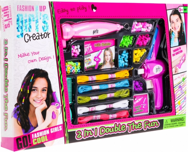 Ten bogaty kreatywny zestaw umożliwia dzieciom łatwe i przyjemne tworzenie ozdób do włosów z koralikami, a także bransoletek, naszyjników, zawieszek i całych kompletów biżuterii. Intuicyjne narzędzia do zaplatania i nawlekania przyspieszają pracę i inspirują do nowych pomysłów. Dzięki szerokiej palecie kształtów i kolorów za każdym razem powstają unikalne kombinacje.