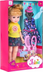 - Kompletne wyposażenie: lalka, sukienka, koszulka, spódniczka, buty, grzebień i lusterko.