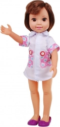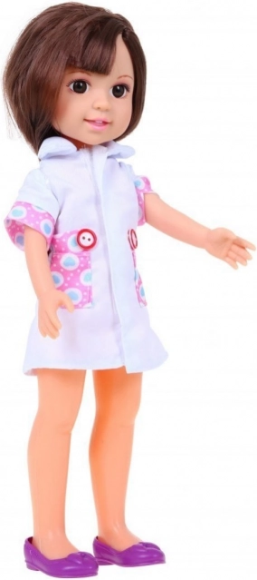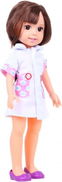 Duża lalka z miłym wyrazem twarzy zachęca do opiekowania się, rozwija empatię i umiejętności społeczne podczas zabawy w medyków.
