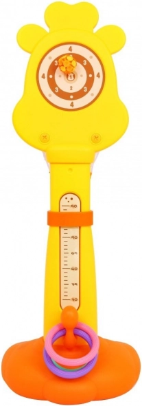 Uroczy zestaw w kształcie żyrafy zachęca dzieci do ruchu, rozwija koordynację wzrokowo-ruchową i wspiera zdrowe nawyki. Wysokość kosza łatwo dopasujesz do wieku i umiejętności dziecka (125–155 cm), więc zestaw rośnie razem z nim. Solidna plastikowa konstrukcja i duża podstawa zapewniają stabilność podczas zabawy.
