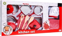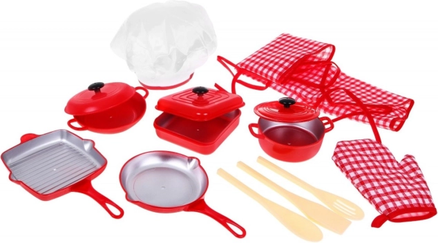 Ten czerwony zestaw kuchenny jest idealny do zabawy w dom, kuchnię lub restaurację. Dzieci otrzymują realistycznie wyglądające naczynia z pokrywkami, patelnie i sztućce, a do tego cały kucharski strój. Wszystko zaprojektowane w lubianym czerwonym kolorze i w rozmiarach odpowiednich dla małych rąk.