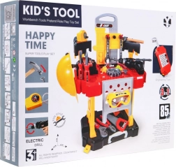 Kompletny dziecięcy zestaw dla małych majsterkowiczów oferuje 3w1: stolik warsztatowy, kuferek na narzędzia i strój kierownika budowy. W opakowaniu znajdziesz 85 elementów realistycznych plastikowych narzędzi i akcesoriów, w tym wkrętarko-wiertarkę (na 2× AA, brak w zestawie), kask, gogle ochronne i maski. Świetne do rozwoju motoryki małej, kreatywnej zabawy i bezpiecznego poznawania narzędzi dla dzieci od 3 lat.