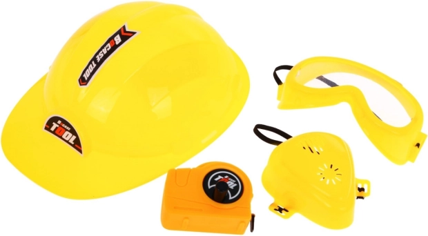 Praktyczny kuferek trzyma wszystkie narzędzia pod ręką. W zestawie znajduje się kask, gogle i maska dla jeszcze bardziej realistycznej i bezpiecznej zabawy.