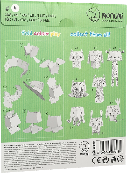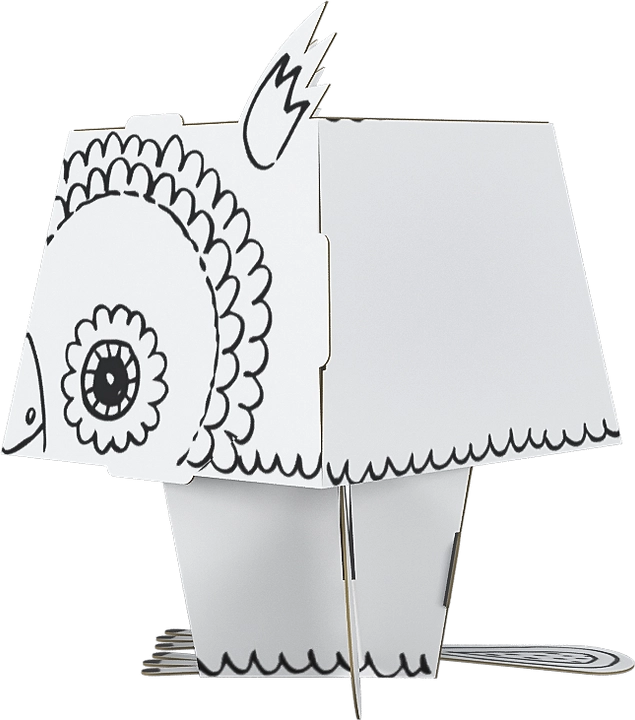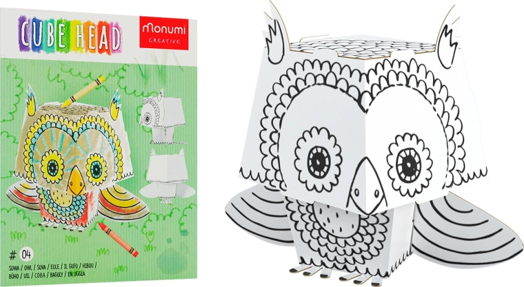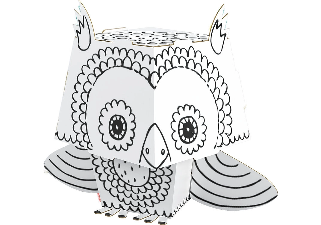 Zabawna i kreatywna składanka 3D do kolorowania w kształcie sowy z białego kartonu ucieszy małych twórców. Elementy są precyzyjnie wycięte, łatwo się składają bez kleju i nożyczek. Stabilny, lekki i wytrzymały model jest idealny do kredek, flamastrów, markerów i farb.