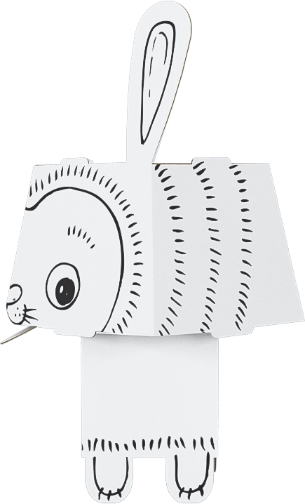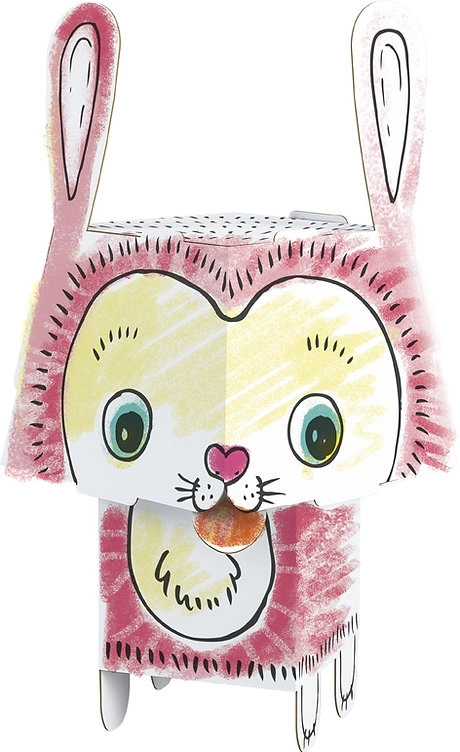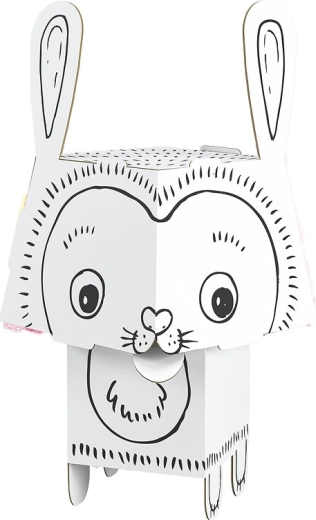 Zabawna papierowa układanka 3D w kształcie królika daje dzieciom kreatywną radość z kolorowania i składania. Model z mocnego białego kartonu ma precyzyjnie wycięte elementy, które łatwo się składa bez kleju i nożyczek. Po złożeniu jest lekki, stabilny i trwały, odpowiedni do kredek, flamastrów, markerów i farb.