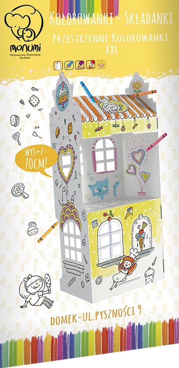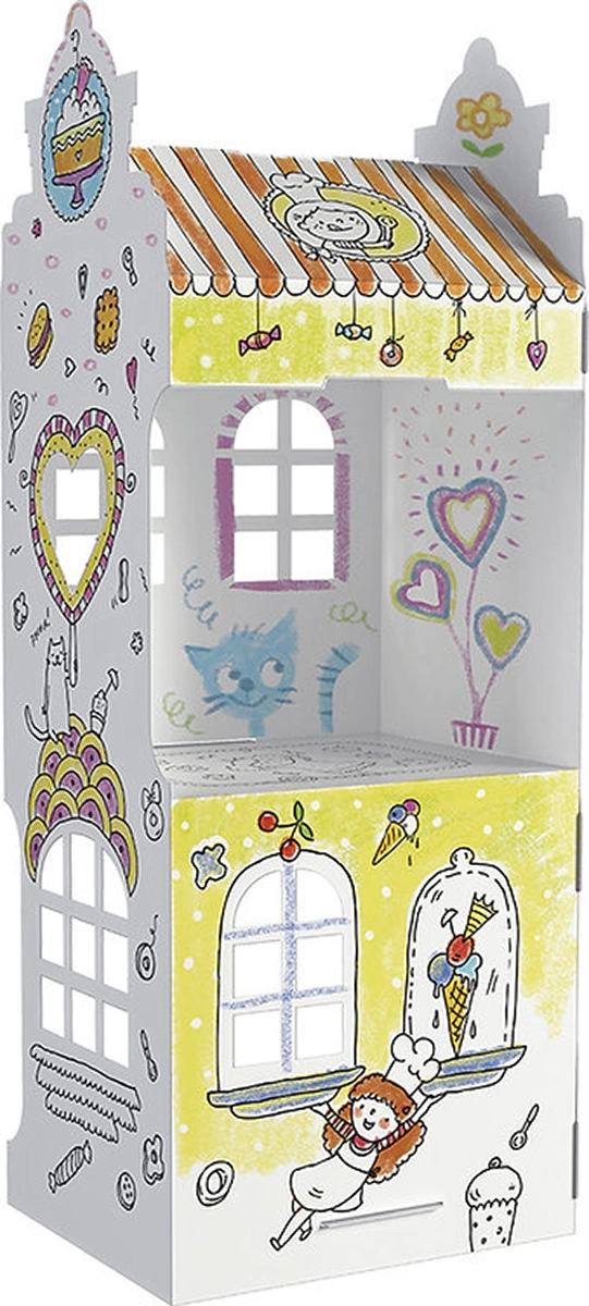 Odkryj kreatywną zabawę z kartonowym domkiem do kolorowania, który po złożeniu zamieni dziecięcy pokój w małe miasteczko. Dzieci mogą używać kredek, pisaków i farb, a po złożeniu bawić się domkiem całymi godzinami.