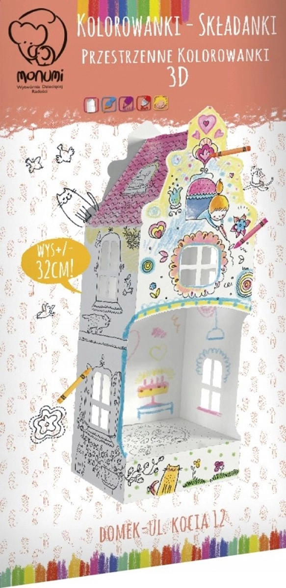 Ten przestrzenny domek 3D z serii Colourful Forms łączy twórcze działanie ze świetną zabawą. Najpierw dzieci mogą go pokolorować według własnej fantazji, a następnie łatwo złożyć w solidny model, którym można bawić się w domu lub w przedszkolu.