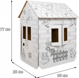 Domek szybko złożysz bez narzędzi. Lekki karton jest bezpieczny dla dzieci i łatwy do przenoszenia oraz przechowywania.