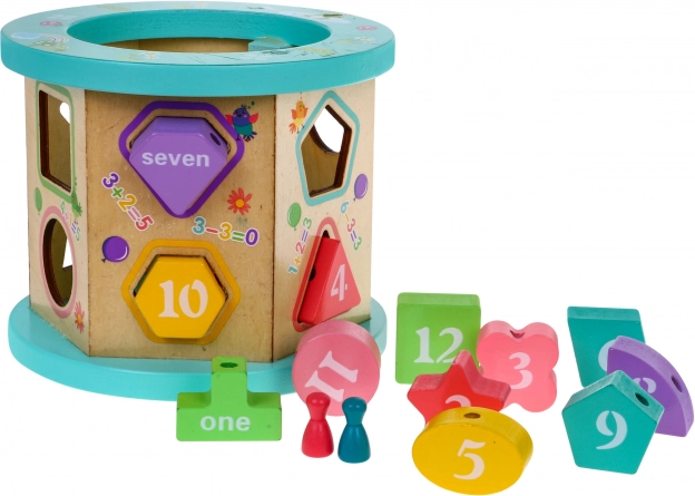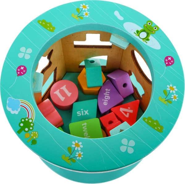 Łączy funkcje sortera kształtów, liczydła oraz planszy do gry z liczbami i angielskimi słowami.