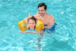 Nadmuchiwane rękawki Bestway Swim Safe ABC to świetna pomoc dla dzieci rozpoczynających naukę pływania. Dwukomorowe wykonanie z wytrzymałego PVC zapewnia stabilność na wodzie i większe bezpieczeństwo, a lekka konstrukcja nie ogranicza naturalnych ruchów rąk.