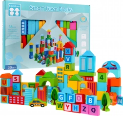 | - klocki ok. 3 cm x 3 cm x 3 cm, - klocki ok. 3 cm x 3 cm x 1,5 cm, - klocki ok. 6 cm x 3 cm x 3 cm, - klocki ok. 6 cm x 3 cm x 1,5 cm, - opakowanie ok. 38 cm x 26 cm x 3,5 cm. |