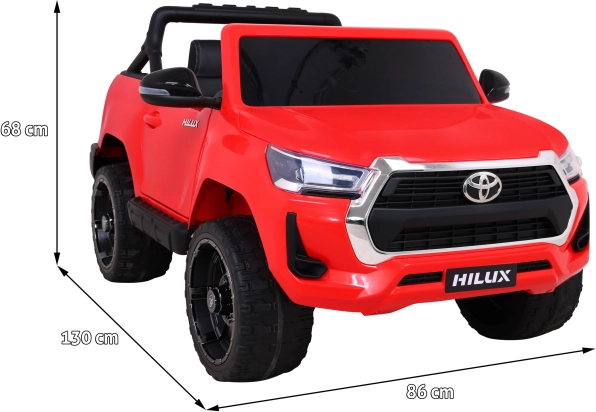 Licencjonowany wygląd legendarnego pick-upa TOYOTA Hilux w wersji dla dzieci zachwyca realistycznymi detalami, otwieranymi drzwiami i opcjonalnym napędem 4x4 / 2x2. Mocna bateria 12V/14Ah oraz cztery silniki 45 W zapewniają płynny start i wystarczającą moc do jazdy po ogrodzie i twardych nawierzchniach.