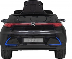 Czarny samochodzik dla dzieci MERCEDES-BENZ AMG EQA zapewnia realistyczne wrażenia z jazdy dzięki płynnemu startowi, amortyzacji przedniej i tylnej osi oraz wygodnemu siedzeniu z czarnej ekoskóry z 5‑punktowymi pasami. Dzięki zdalnemu sterowaniu 2,4 GHz rodzice mogą w każdej chwili przejąć kontrolę, w tym awaryjnie zatrzymać pojazd jednym przyciskiem.