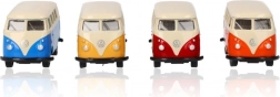 Volkswagen T1 MicroBus to szczegółowo wykonany model, który zachwyci każdego miłośnika retro designu. Ten metalowy model z gumowymi kółkami jest idealny zarówno do celów kolekcjonerskich, jak i do zabawy dla dzieci. Dzięki mechanizmowi na koło zamachowe wystarczy pojazd pociągnąć do tyłu, a sam się poruszy do przodu.