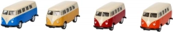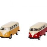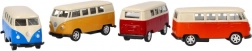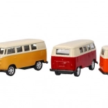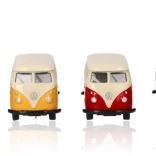 Volkswagen T1 MicroBus jest idealnym modelem kolekcjonerskim dla entuzjastów klasycznych pojazdów. Ten metalowy model posiada gumowe kółka, które zapewniają lepsze właściwości jezdne. Dzięki mechanizmowi na koło zamachowe po zysku odpowiedniego ruchu wstecznego sam się porusza do przodu.