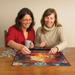 Do opakowania dołączono również planszę wzorcową o wymiarach 30,5 × 22,9 cm, która pomaga w orientacji w detalicznym motywie znaku zodiaku – lew. Po ułożeniu puzzle mają około 48,9 × 67,6 cm, więc nadają się do oprawienia w ramę i jako prezent dla miłośników astrologii.