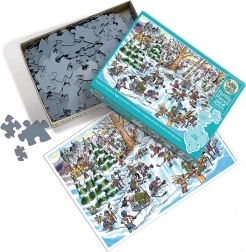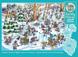 Rodzinne puzzle COBBLE HILL Hokejowe miasteczko zostały zaprojektowane tak, aby cała rodzina mogła układać je jednocześnie. Duże elementy są skupione w jednej części motywu i świetnie nadają się dla młodszych dzieci, średnie dla starszych dzieci i dziadków, a drobniejsze dla dorosłych i bardziej doświadczonych układających. Kolorowa zimowa ilustracja z hokejem i jazdą na łyżwach na stawie działa optymistycznie i doskonale prezentuje się także jako gotowy obraz.