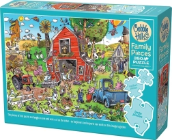 Ciesz się wspólnym układaniem z rodzinnymi puzzlami COBBLE HILL „Szalona farma” z 350 elementami. Opakowanie zawiera elementy w trzech różnych rozmiarach – dla dzieci, rodziców i dziadków. Niestandardowe kształty elementów zwiększają frajdę i poziom wyzwania, a czytelny podział motywu według rozmiarów ułatwia współpracę całej rodziny.