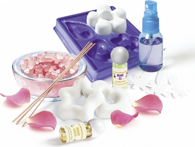 Zestaw zawiera wszystko, czego potrzebujesz do eksperymentowania z kosmetykami oraz do tworzenia własnych perfum i pachnących dekoracji.