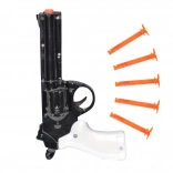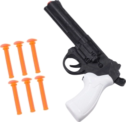 Zabawny i bezpieczny zestaw pistoletowy dla małych strzelców. Dzięki miękkim strzałkom z przyssawkami dzieci mogą ćwiczyć celność w tarczę lub na gładkich powierzchniach bez ryzyka urazu. Pistolet wykonany jest z wysokiej jakości, bezpiecznego dla zdrowia plastiku, odpornego na uszkodzenia i świetnie leży w dziecięcej dłoni. Idealny prezent dla dzieci od 6 lat.