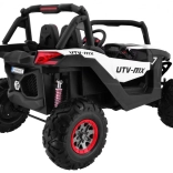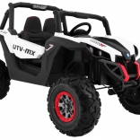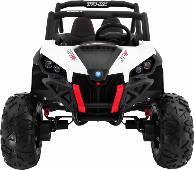 Bezpieczeństwo rodzice mają w swoich rękach dzięki pilotowi 2,4 GHz z trzema prędkościami i funkcją awaryjnego zatrzymania STOP. Dzięki przełącznikowi 2×4 / 4×4 dopasujesz moc do terenu i wydajności. Oświetlenie LED z przodu i z tyłu zwiększa widoczność i nadaje autentyczny wygląd prawdziwego UTV.