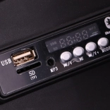 Obsługa jest prosta – rozruch kluczykiem, jazda do przodu/tyłu oraz 3 prędkości do przodu sterowane dźwignią. Panel audio oferuje Bluetooth, USB, MP3, SD, AUX, radio FM oraz preinstalowane melodie. Praktyczny tylny schowek pomieści drobiazgi na drogę, a wskaźnik naładowania przypomni o czasie ładowania.