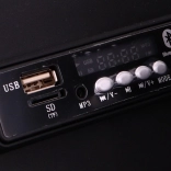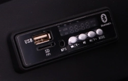 - Zabawa i widoczność: światła LED, panel audio (MP3/USB/SD/BT/FM), wskaźnik naładowania.
