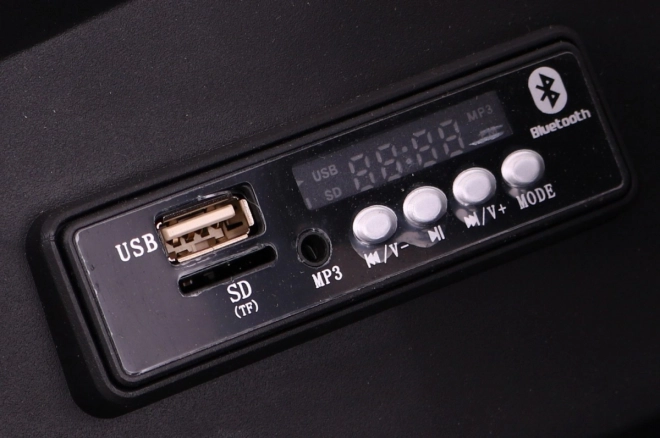 MP3, USB, SD, AUX, Bluetooth i radio FM dla mnóstwa muzyki. Przednie i tylne oświetlenie LED z włącznikiem dodaje stylu i widoczności.