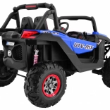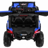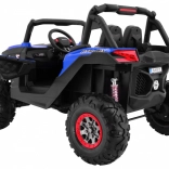 Mocny dziecięcy samochód terenowy z napędem 2×4 lub 4×4, podwójnym akumulatorem 2× 12 V / 7 Ah i czterema silnikami 4×45 W. Oferuje zdalne sterowanie 2,4 GHz z 3 prędkościami i przyciskiem bezpieczeństwa Stop, miękkie koła EVA, w pełni funkcjonalne światła LED, zawieszenie z przodu i z tyłu, panel audio z MP3/USB/SD/Bluetooth/FM, rozruch na kluczyk, otwierane drzwi z blokadą, wentylowane siedzisko z ekoskóry z pasami oraz tylny bagażnik.