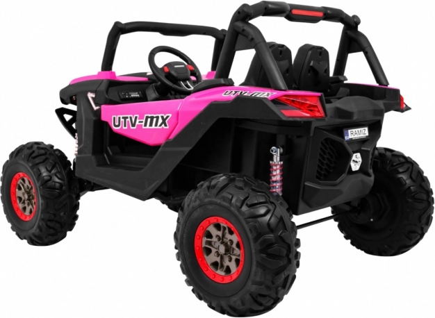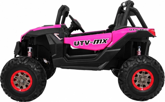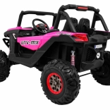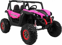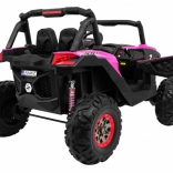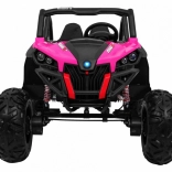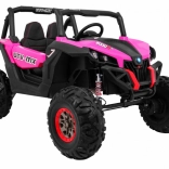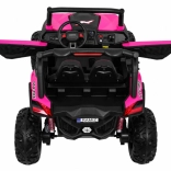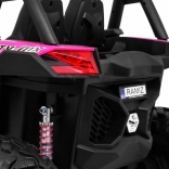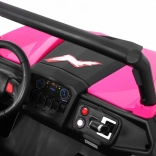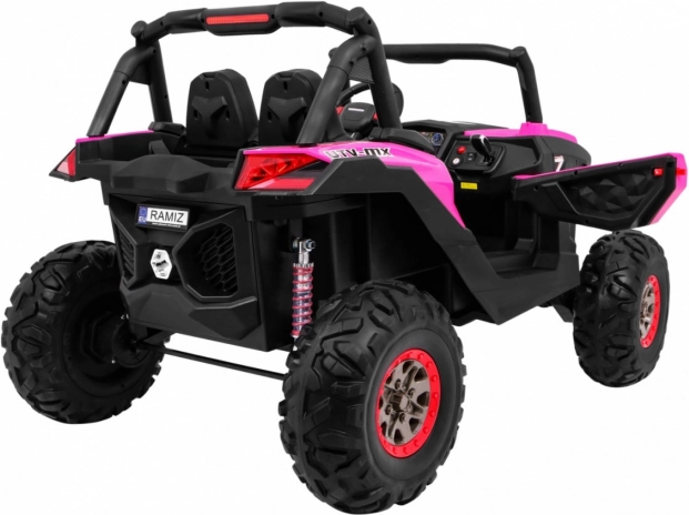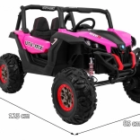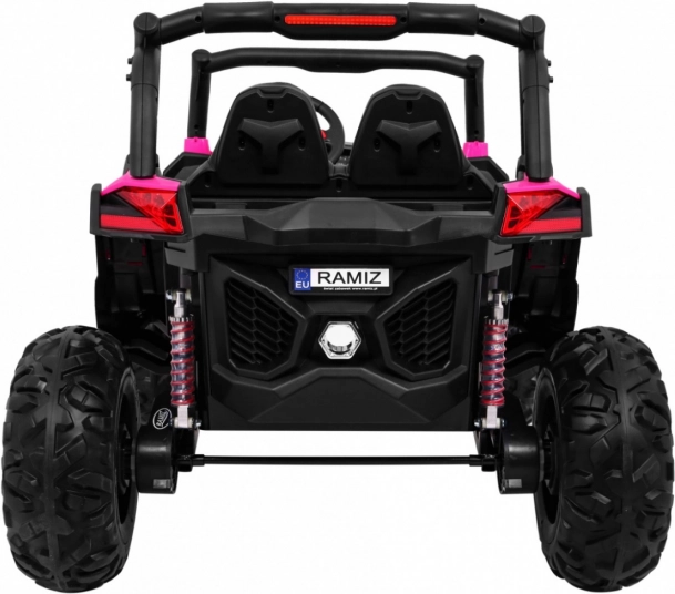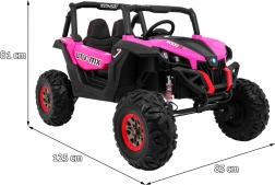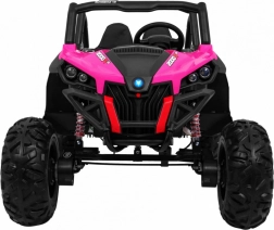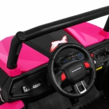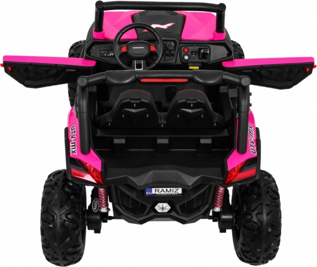 Odkryj przygodę z dziecięcym elektrycznym buggy 4x4 w kolorze różowym – solidnym, dwuosobowym pojazdem z przełączanym napędem 2×4/4×4, dużymi kołami EVA i bogatym wyposażeniem. Dzięki pilotowi 2,4 GHz z trzema prędkościami, przyciskowi bezpieczeństwa Stop, miękkiemu siedzisku z eko-skóry oraz świetlnym efektom LED zapewnia bezpieczną i pełną frajdy jazdę. Na pokładzie znajdziesz MP3/USB/SD/Bluetooth, radio FM, otwierane drzwi z blokadą oraz tylny schowek.
